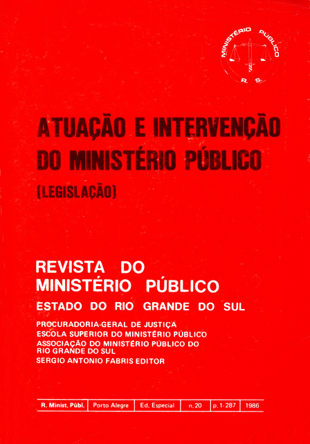 Vol. 1 Núm. 01 (1973)Publicada pela Procuradoria Geral da Justiça em Convênio com a Associação do Ministério Público do Rio Grande do Sul.